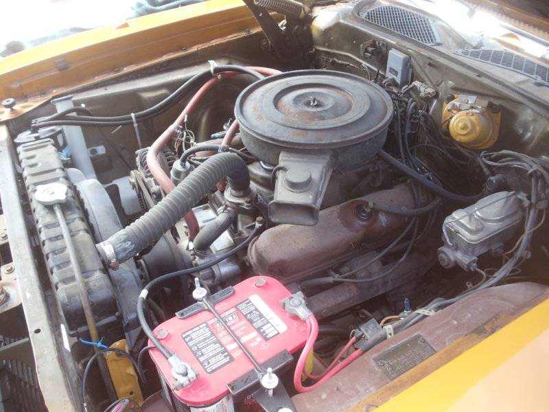 The Satellite has an NOS Carter two-barrel carb and a "red" Optima battery. I squirted some gasoline into the air horn and it fired right up and kept running.