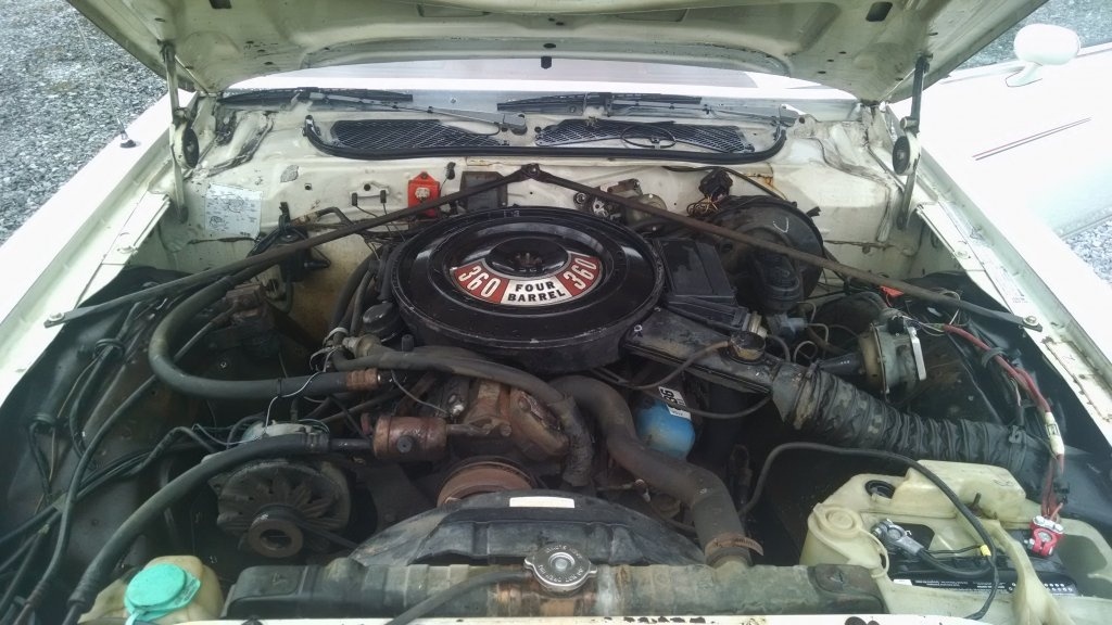 '79 Chrysler 300. If memory serves the stock 360 has 8:1 compression. I've heard about ditching the quad/emissions/etc.