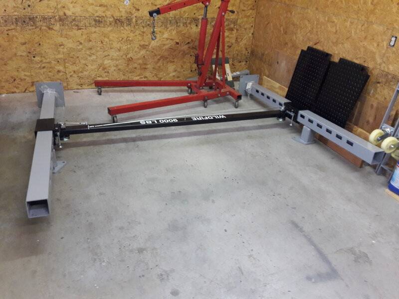 Something I made up for mine which would be handy for others. I got ahold of some 4x5 rectangle tube to make some crossbeams that fit between the ramps. With these I can put some wood under an area after lifting with the rolling jack, set it down on the wood then move the jack to a different area.
