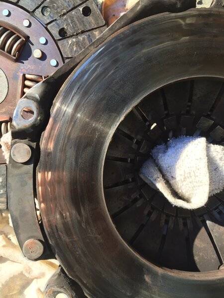 Mine wasn't that bad looking, but a quick lick with a 60 grit disc and it's as rock solid as it was in '79! Faced the OE flywheel in my old Forward lathe and then gave it the same cross hatch treatment with the flap wheel while rotating in the lathe.