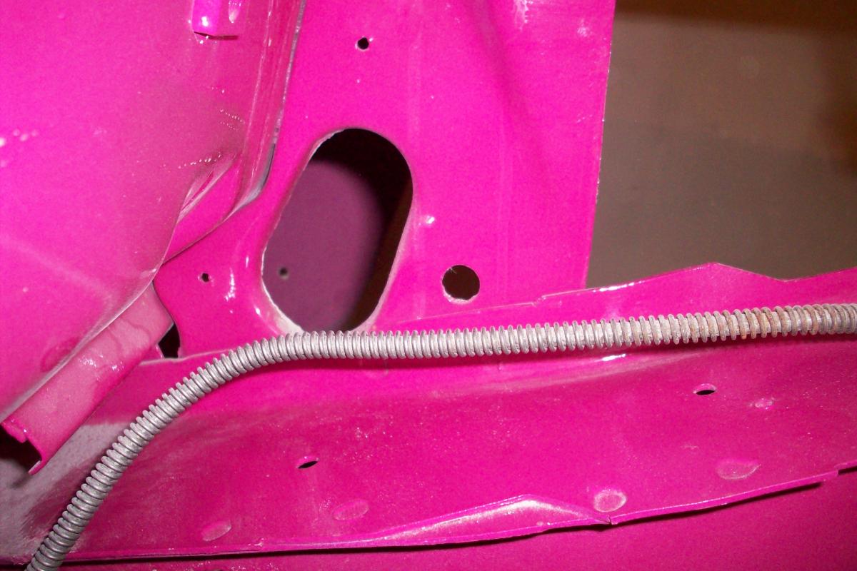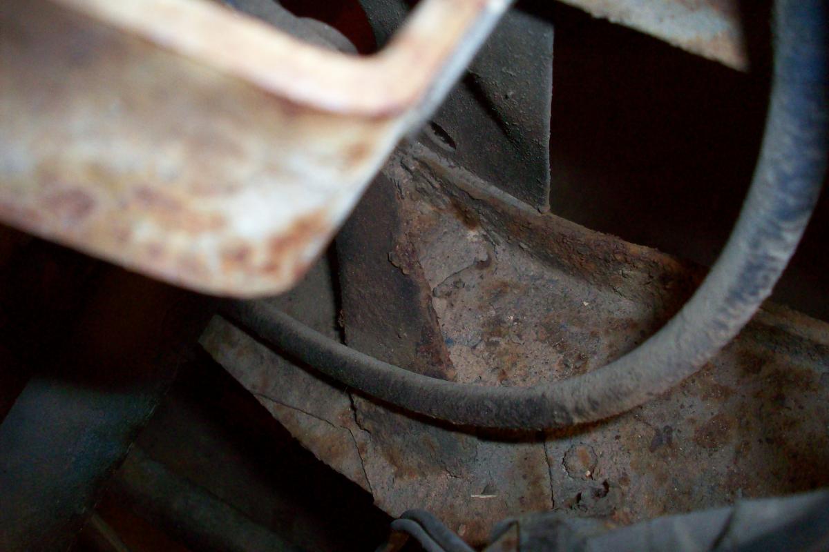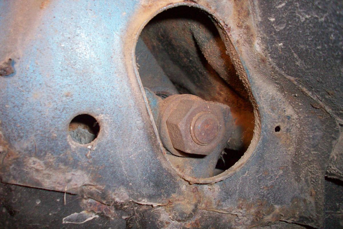 So not that this is any help. And I cant even try to measure through the corrosion but here is some pics i took this morning of my SB 4 spd car and soon to be converted BB 4 spd car.I called Passion and on the new brkt, there is a small tab below the ball stud mt.Set your brkt on the table and it is holding the brkt up from sitting flush. This tab fits down in the same size hole in the frame rail. The hole is rectangular and right below the maintainance access hole.The tab drops in and the brkt sits flush with the rail. Your only other option is to install the motor and bell housing and line it up to weld it. My car doesnot have this hole either,It is all original but it is a convertible, so who knows????