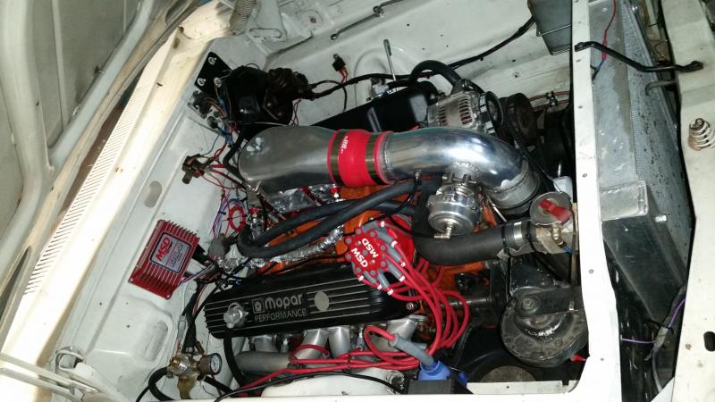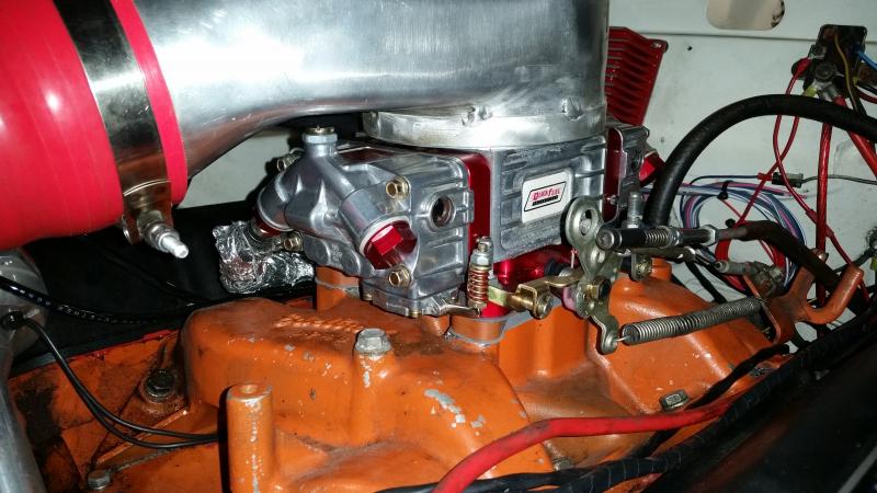 Yep it´s a blow thru setup, but the turbo is remote mounted under the car behind the rearaxel so there is no heat from turbo that will heat up the engine compartment. It´s a quickfuel 650 carb and it works flawless otherwise.