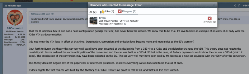 I agree the 426 reference is interesting but there is NO proof or documentation this car came equipped with anything other than a 383.