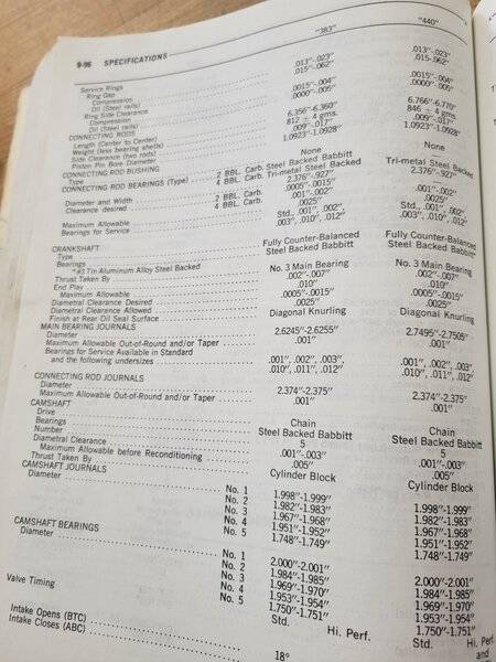 In this case for this type 440.... by very simply following instructions and grinding the Crank LOWSIDE.... and sizing everything else Rod Big Ends/Mains "midsize" as is common practice at farm implement/NAPA shop syle houses .... you will end up right around .003+" mains and .0025" Rods.