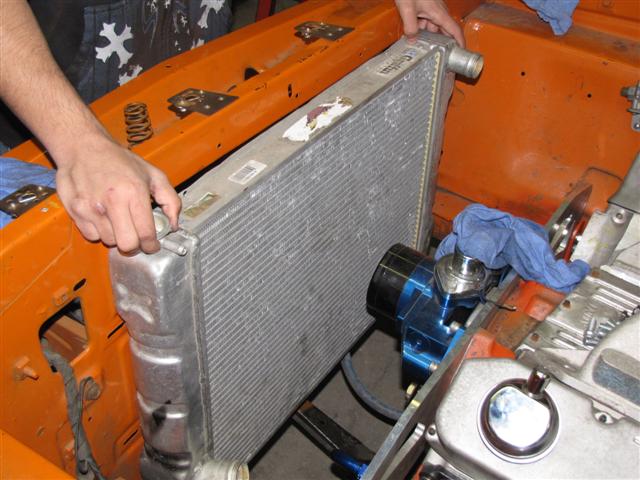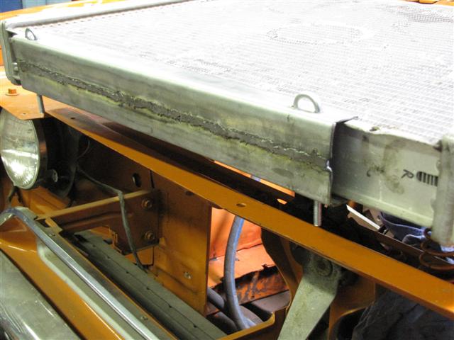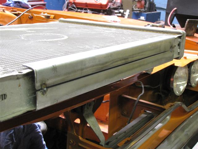 Now I need your help again. I know some of you have put aftermarket radiators in. I am trying to do the same thing, but I have no place to to bolt it in. There is a 1/8" flange that is not big enough to put a bolt through. I am thinking about using some channel stock to hold it in place. I do not have the means to weld aluminum. If you can give me some input I would love to hear from you. As you know a picture is worth a thousand words. Thanks in advance for your help! I am posting some pics of the radiator in question.