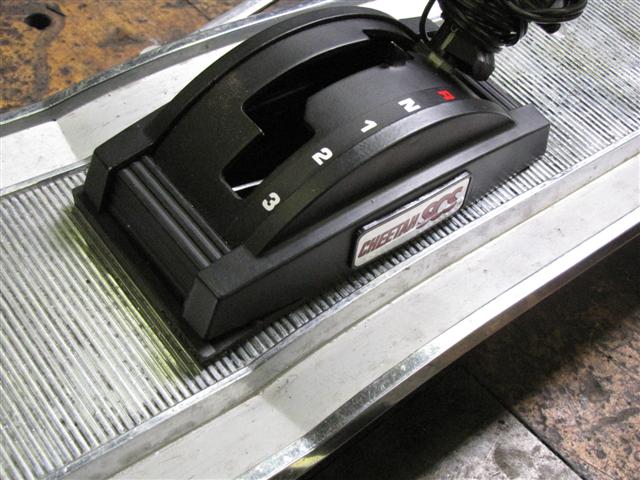 OK I took the plunge after considering my options with the limited knowledge I have. I am going to try and marry the old school console with the new Cheetah shifter. I removed the panel and cut a hole the size of the shifter base. Now I have to find a way to secure it. I am going to fabricate some brackets that will help to hold this baby together. I tried using some sheet metal but it was too thin, so I went out and picked up some 1/8" steel 1" wide. I will layout the lines for the bends I need to make and the holes I need to drill. Here are a few pics I have taken of what I have gotted done so far. I do want you to know that I have considered the cost of cutting an original shifter, but that is why I bought it in the first place!