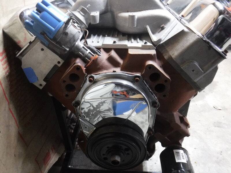 I decided to go a different direction for my charger so I'm selling my 496 stroker big block. This engine has dyno time only. It was built by muscle motors in Lansing MI. It made 605hp and 652trq. The motor idles at 900 and has bulldog ported and polished aluminum heads. The block is a 65 440 and it has an Indy intake and valley plate. I bought this motor three years ago and I fogged it and prime the oil system once a year. I also turn the engine over just to keep it fresh. Cam is a solid flat tappet. I can't find the specs for it. The engine idles nicely at 900 rpm so its not to wild. This engine runs on pump 93 gas. Will need a different distributor, the in the engine is just to keep it sealed up but it goes with engine if you want it. Engine stand does not go with the engine. PRICE IS 8500.