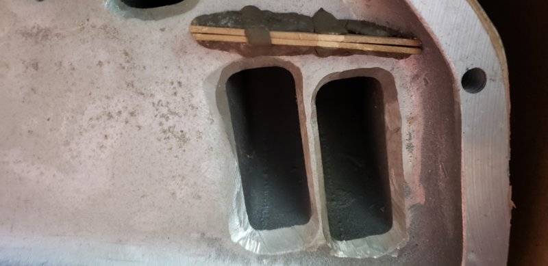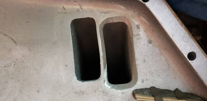 The area behind the one outboard carb hole is rushed looking too, and not enough material left of the original hole by the carb surface:
