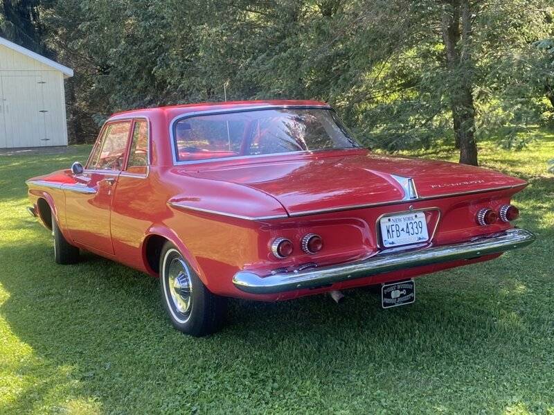 Here’s my recently purchased 62 Plymouth Belvedere 2 door sedan. I had it painted last summer and just got her all back together. I had bumpers re-chromed and I de-dinged and polished all the stainless myself. Was very rewarding. Found a nice grill and other needed parts on eBay. It was originally a red body/ermine white top, Royal Tartan interior car. I’d call it “Scotch red/black plaid.” From what I have been told, not too many of these were made…my highly 62 Plymouth educated friend said they were made mid-year perhaps for a spring special. Anyways, interior was replaced prior to me owning it. They used non-original inserts on seats but what look to be correct vinyl patterns. I hope to get original seat material from SMS and get the seats redone back to original over the winter. Has 318 with standard transmission “three on tree”…Fun car to drive. Top two photos are the latest right after I found some nice 15” American Racing wheels with 235/70-15 black walls on CL. Really set it off nicely.