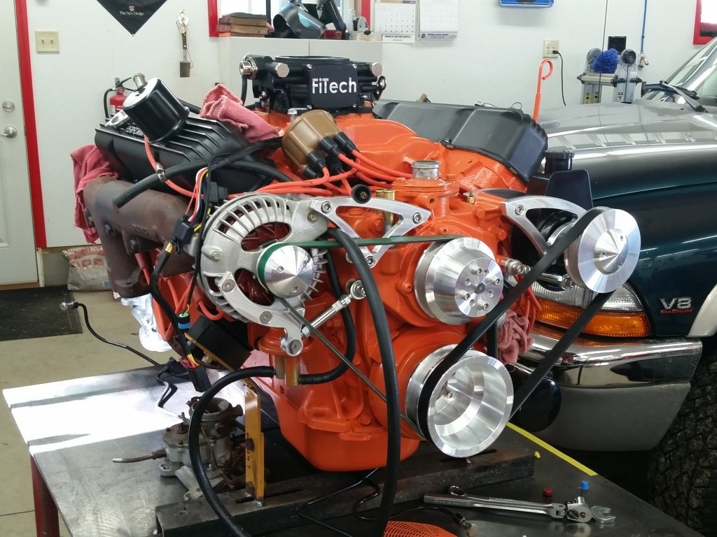 wow looks great with a white top looks like your friend is doing a awesome job on itI don't think I ever posted these photos here yet. A friend is doing a 64 Sport Fury. I don't have any latest photos but these were taken late last fall. He is getting pretty close and it should be ready to debut this spring. Early on I found some original wheel covers. I can't remember who I got them from. Thanks to Shorthorse for helping with some headlight eyebrows last week. Joe took out the Poly and replaced it with a 440 with Fi tech injection. He is doing all the work himself except for the prep and paint. He doesn't have internet or a computer at home so he's not a member here. Looks like it's going to be a pretty one when done. tmm