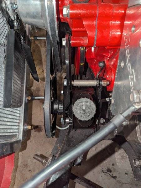 Where did you buy the Bergman kit? I saw 440 source sells brackets also.Just posting a couple of better pics in case anyone does this kit and needs to figure out the spacers (have to space the pump back off the bracket) Also cut the welded on nut off the lowest bracket that goes to the 2 timing cover bolts so the bracket will go over the back of it..