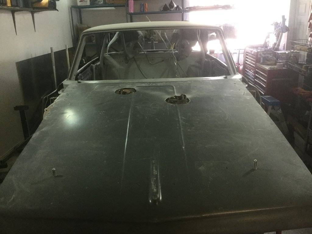 Jimmy and I carefully cut the excess material off the Texas Acres replacement cowl then outlined exactly what needed to be cut off the Fury. The replacement cowl went with Jimmy to be soda blasted and below is how the Fury looks with the cowl removed: