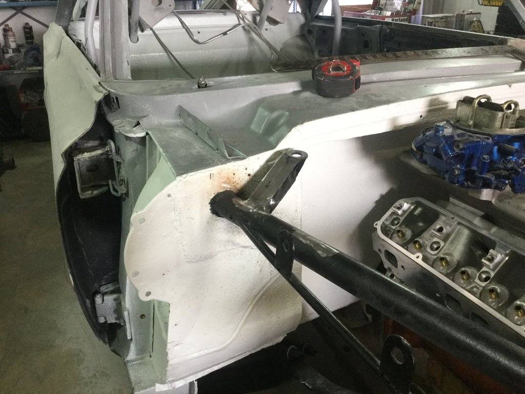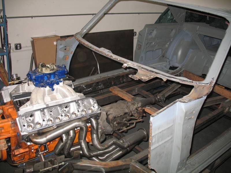 Luckily the window frame and the adjacent inner panels are all in good shape so melding the replacement cowl onto the body should be pretty straight forward as well as give us lots of strong material to work with. The one thing that's still up in the air is just how much we're going to have to pull the firewall back to clear the engine, and part of that question will be answered soon with the arrival of the A&A Transmissions Max Wedge Cross Ram.