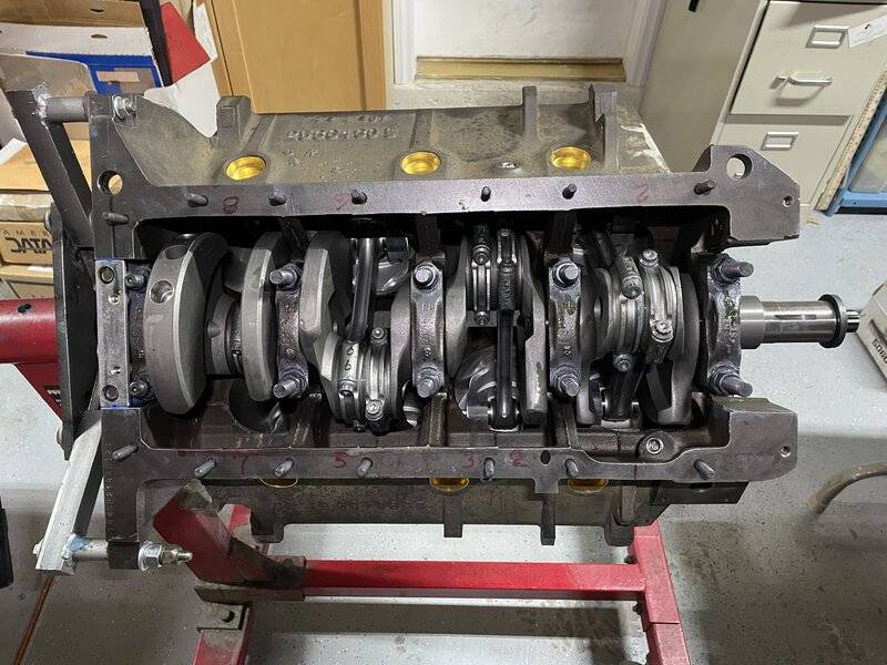 Las Vegas Machine did the boring, honing (bores and crank), rebalanced the entire assembly, installed the expansion plugs, and verified all the clearances, then I put it all together this past weekend. Pargs include a 440Source Lightweight forged crank, 440Source forged H-Beam rods, Icon Pistons, Total Seal rings, and Clevite 77 bearings.