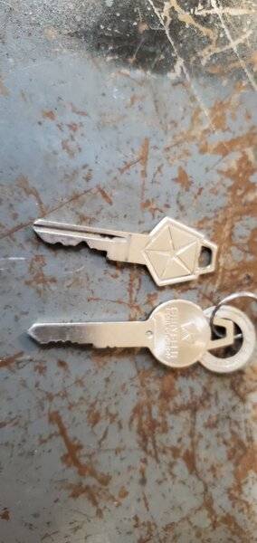 These are my keys for my 64 fury wagon. You can see the round key has a lot of unused length. I think the round key is original but don't know for sure. I can't figure out why the hex key works in the ignition and back window but not my doors. Why someone would replace only the door locks??