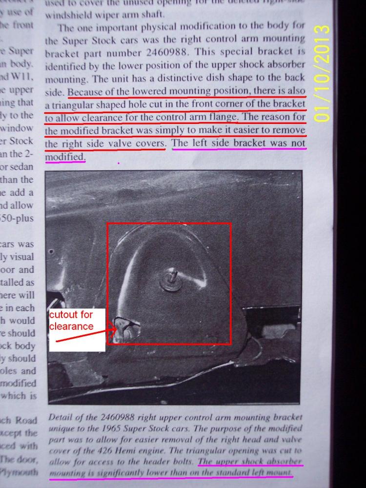 I am working on a 65 belvedere A990 hemi clone. Looking for pictures of the inverted shock tower.Would like to look at a picture before I start cutting.