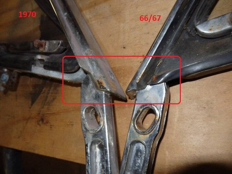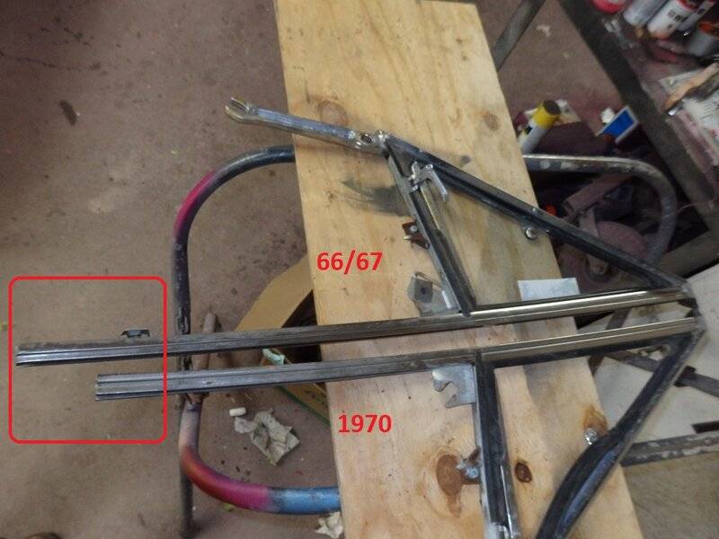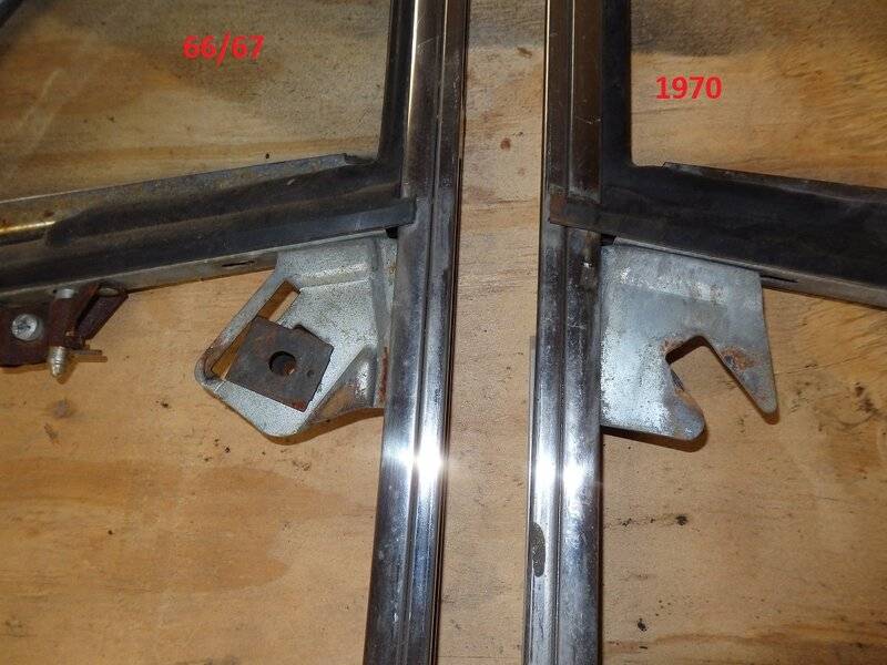 With that said I present the differences between a 1970 Conv vent window and the 66/67 style.