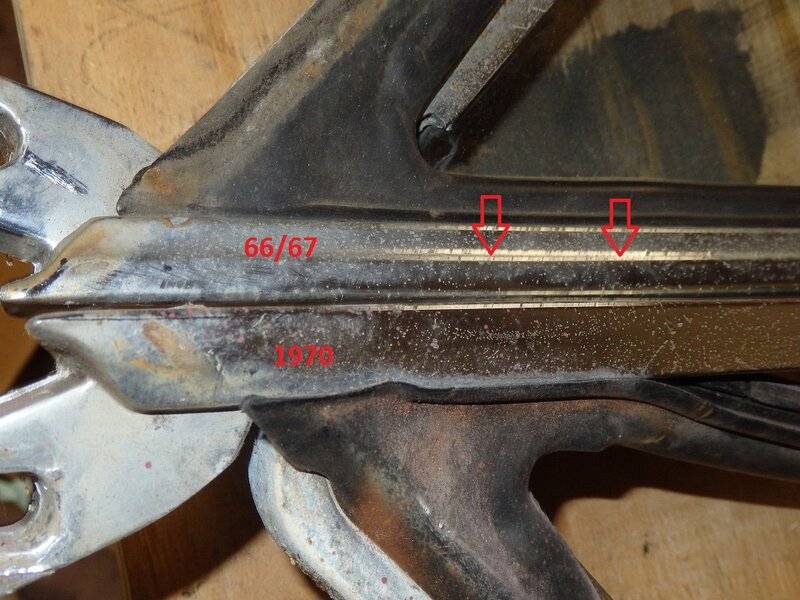 1) Drip edge/lip where the chrome piece meets the door is cut back on the 70 version. It would take a bit of grinding to make it fit a 70 door.