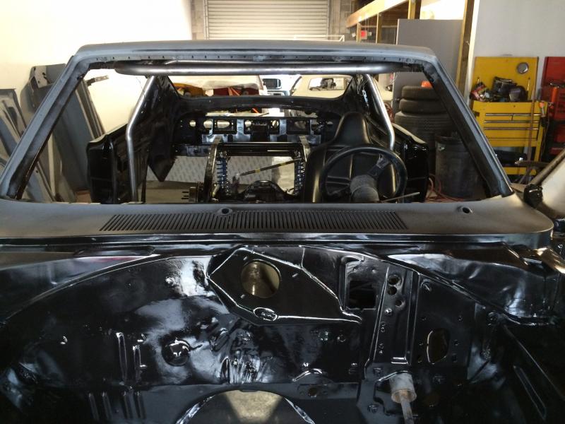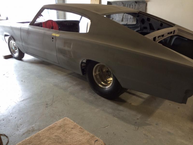 I have not posted about this car in almost a year. Work family and money, mostly work getting in the way..... First car build, trying my best. Almost ready for paint. 440, 727 auto trans, wildwood disk brakes, S&W back half kit, 4 link, S&W narrowed 9 in. Strange center and axles, 31 spline, 355 highway setup and 411 strip setup. Qa1 coil overs, stock front setup with wildwood disc coming soon, 33x19.5x15 mickeys, 10 point S&W roll cage tig welded, will probably add more supports. I would like to setup with nitrous, not sure when, and yes cut the chrome off the sides of the car, looks better in my opinion. I purchased the car as a former race car, could not be saved as original, but pro street was halfway there.