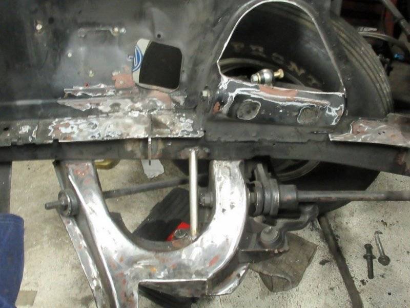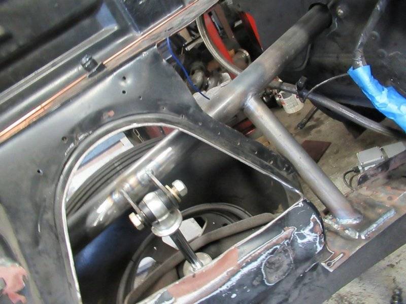 IF i had a strut type the tabs would be directly under the bar and one more support. Before the shock tower was removed I had 2 tabs UNDER the tower to hold the shock or I would have had to drop the shock out to remove the valve covers. When the engine was set back the tower had to GO!I'm sorry, I'm "missing it". I see the 2 vertical tabs welded to the tubing. Are those 2 tabs going to support the weight of the front of your car?