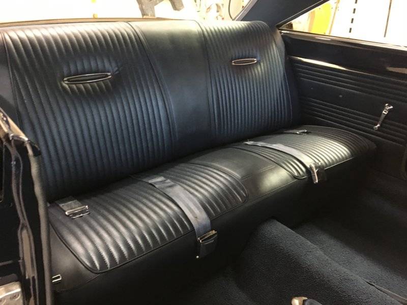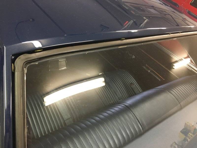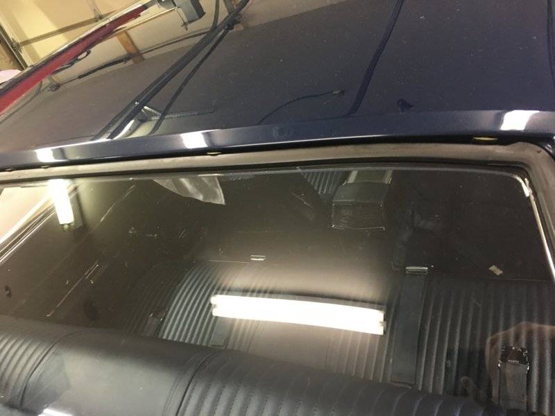 Headliner installed! Trim was installed, long roof pieces were rechromed and rear window trim was able to be polished.