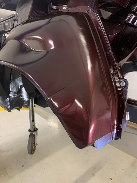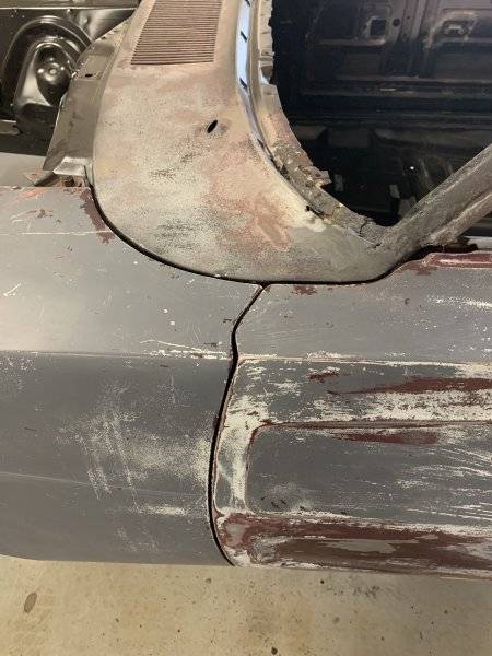 My first trial fitup with a new set of hinges went better than I expected, this car was never wrecked apparently. Everything is lining up real good.