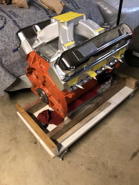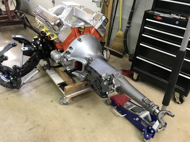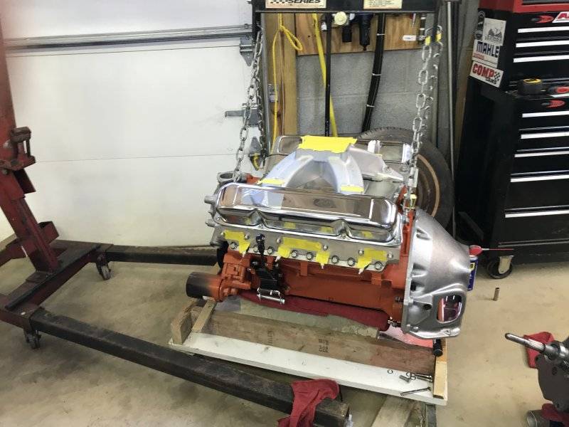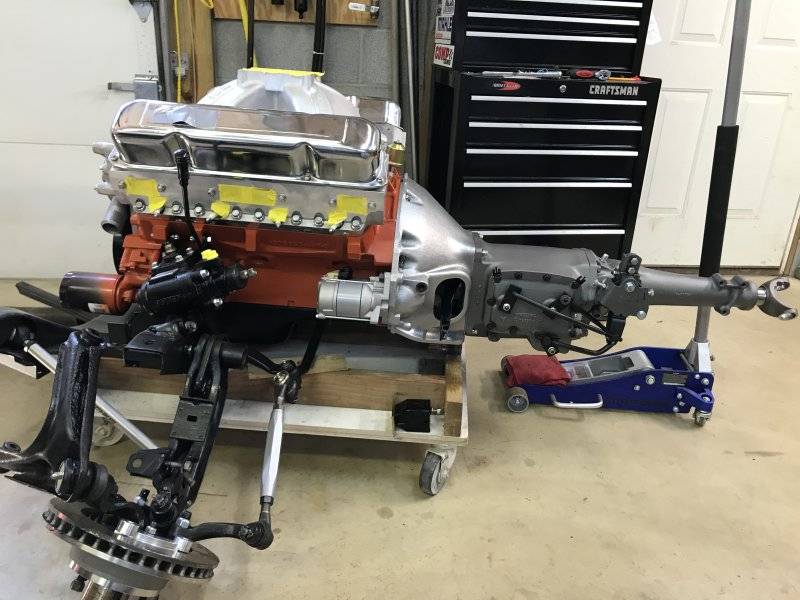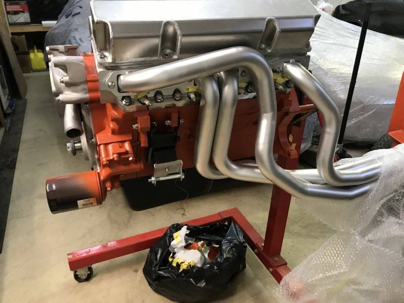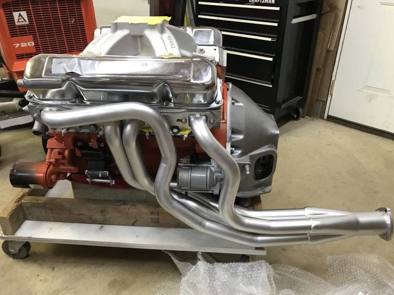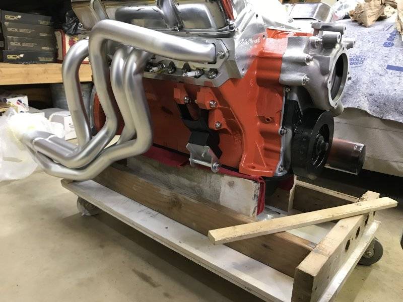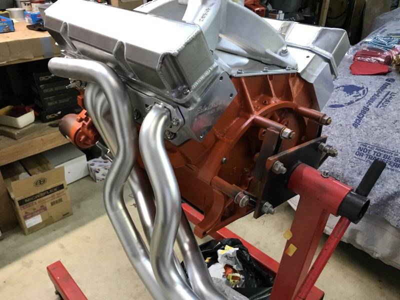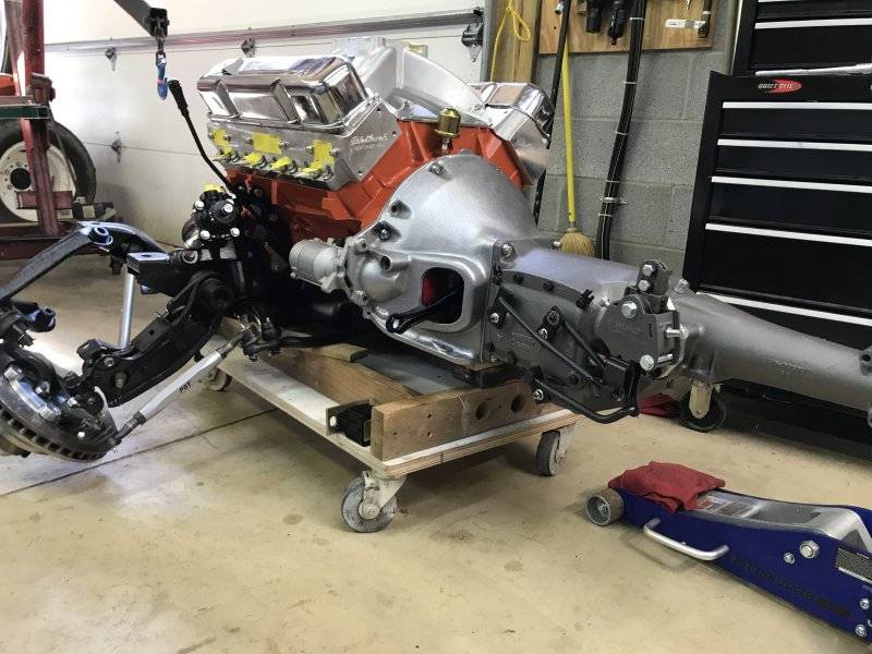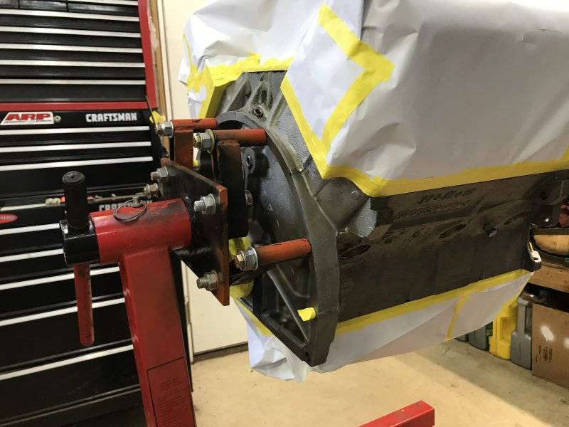 After I had it down on my dolly, I bolted on the bell housing temporarily to check the header and starter clearance.