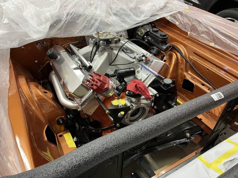 Then I spent the Memorial Day weekend 2022 getting the last few things bolted together and putting the engine in the car. After much reading on here about clutch options, I ended up going with a McLeod Super Street Pro kit.