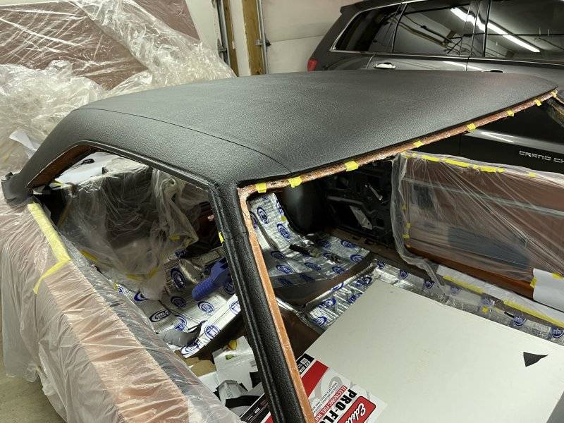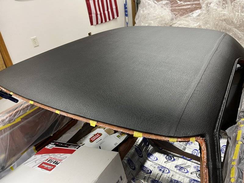 Once again, I didn't get pictures but I marked the centerline of the the vinyl top between the two seams. Then I marked the center of the roof. I lined up the marks on the top of the car and on the vinyl top, used some squeeze clamps to help hold it in place at the front and back window. Then folded back the drives side and started with spraying about a 6-8" wide stripe of glue on the roof of the car and on the vinyl top. Doing the small strip made it easier to ensure the vinyl doesn't move. Once I had that 6-8" wide strip was done, then I continued working the rest of the way to the drivers side. Then I went over to the passenger side. This was my first vinyl top install and I am very very happy with it.