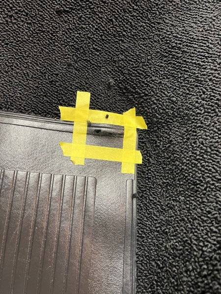 I let it lay in the car for a few days to generally come back to shape, which it did. Then I trimmed the edge up againest the heater box so that I could get it slid far enough up for the 4 speed hump to fit properly. Once the hump and the edge along the heater box were all good, I located where the gas pedal would be right at the edge of the heel pad.