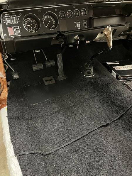 Put the carpet back in place and bolted the gas pedal in. Though I forgot the foam block/seal that goes under the carpet. Still need to take it back out and put that in. Then I trimmed the hole for the shifter and bolted in the handle, rubber boot and trim.