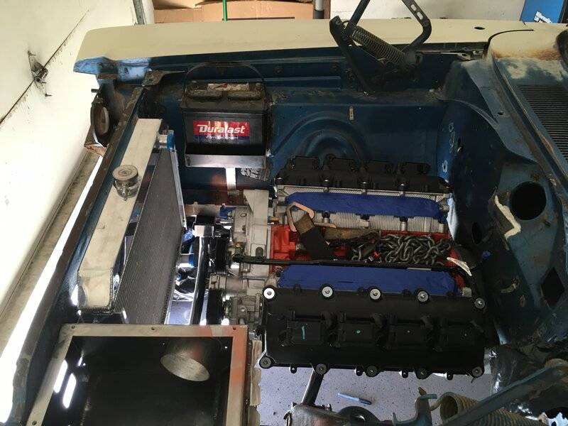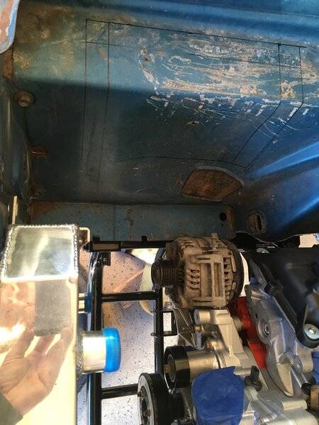 More progress . Got the tr6060 cross member done . I sold the mopar crate trans for an auto then went back to manual and the tr6060 was about 3” longer . Also made a battery tray