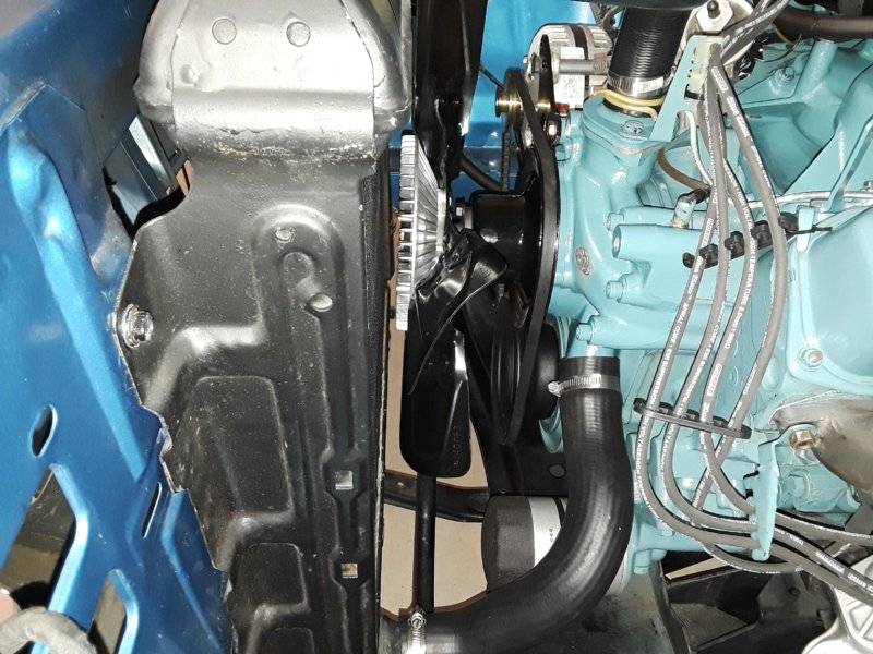 I had 2 fan clutches that where bad out of the box, they where hd units for an rv. a shroud is supposed to be there. you don't have diddly flowin thru your core, or your core could be clogged up, an need to be rodded out. at any rate you need good airflow at low speed. your rr is identical to the one I purchased in 1968, I spent 714 bucks more for the hemi. paper thin carpet an a taxi cab bench seat.