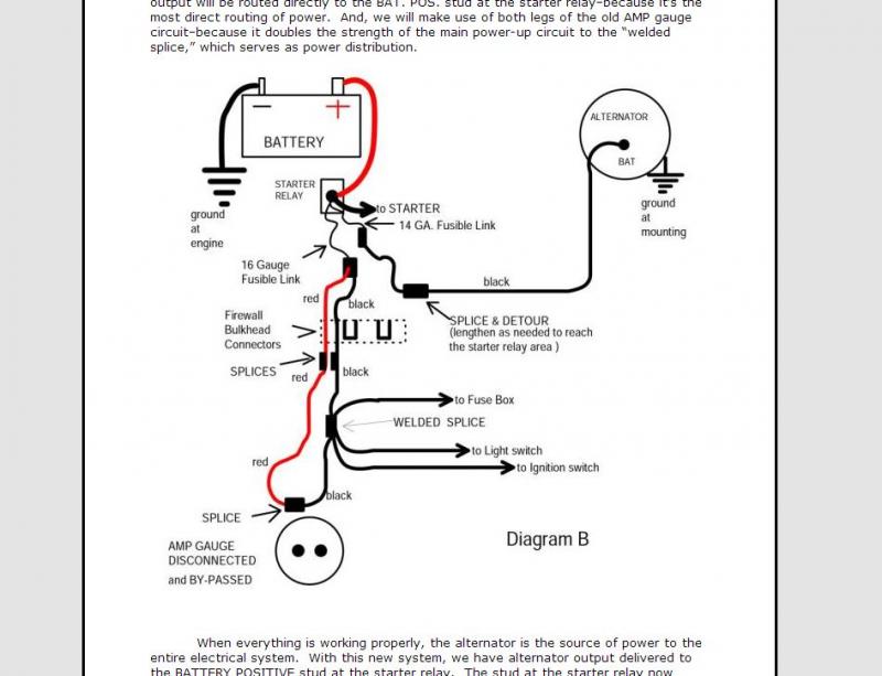 The wiring brought up a question I've been wondering about, since I have a stock wiring harness and stock wiring diagram, does anyone know what wire I should use or how I should modify for my one-wire alternator? I would think I should look at my diagram and just use whatever wire goes to the ammeter but wasn't sure :shruggy: