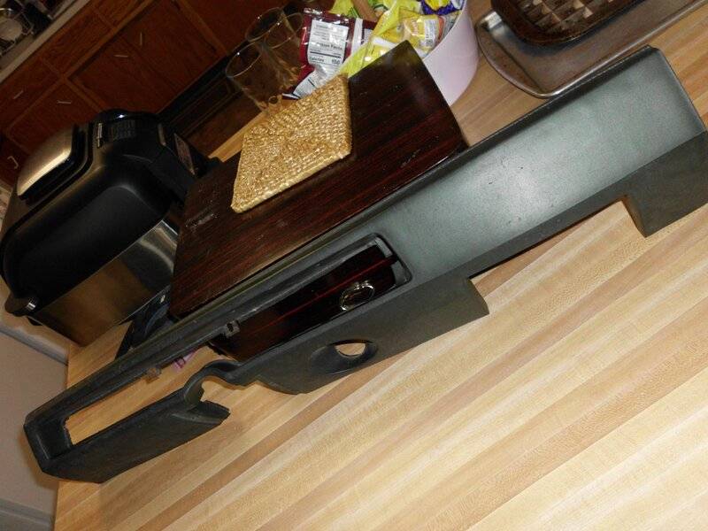 Here's a green one. Vinyl is in decent shape yet. Some discoloration from age, but you likely don't care about that. There are two little holes in the upper lip of the space where the switch panel goes, visible in the picture showing the opening for the ignition switch. Studs and brackets all intact on the back side. $45.00 plus shipping. Posting a total of 6 pictures for your review.