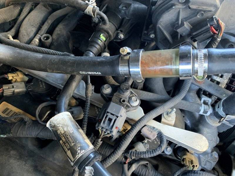 what you are looking at is a coolant filter in a heater hose that was blocking coolant flow to a heater core. when i installed my champion rad it ran 180 to 190 in Florida heat then it started to run in the 220 to 240 range so i drained the coolant to fine all kinds of rust chunks in the tube of the rad witch hurt coolant flow so i bought a coolant filter for the upper rad hose and a Griffin rad then drove 120 miles when i checked the filter it was jamed with rust chunks i removed it and cleaned and it has gotten less as time has gone buy . take it for w i w and install a coolant filter to keep rust from plugin the rad tubs. this picture is from one of my fleet trucks but it shows' what i had with my coolant filter.