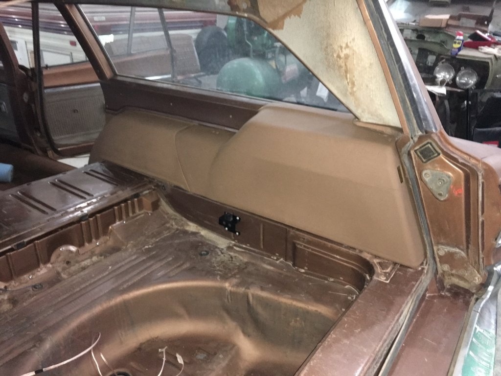 I've made a little progress recently. I finished recovering my rear seats and got them installed with the belts hand cleaned in the sink.