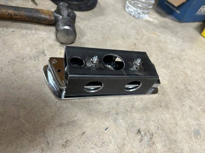 I know there's a good reason for it, but why does it look like that wheel and tire are bolted on backwards?Apparently, they don’t reproduce the funky front marker light retainers for the coronet and I can’t find the used one I had so out come the fab tools and a piece of 2x2 .083 wall. Nothing like reinventing the wheel…