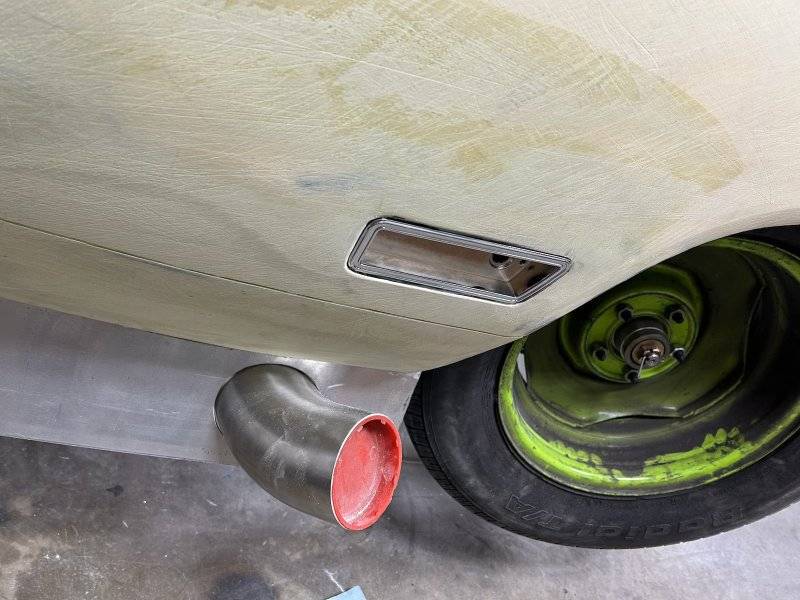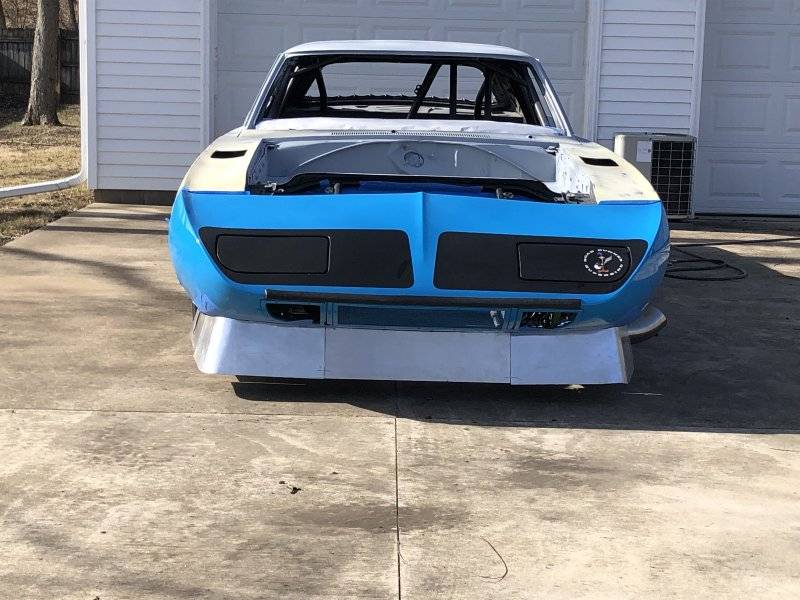 More angle forward would definitely help with the look. It’s 3 separate pieces that bolt to the nose and two that bolt to the fenders. I’m gonna finish this and see how I like it as I can always make another. One of the primary goals for this car was the standing mile which needs all the air out from under the car so we’ll see how this works out. The other dilemma is that the nose is removable and the chin spoiler has to act as a stand