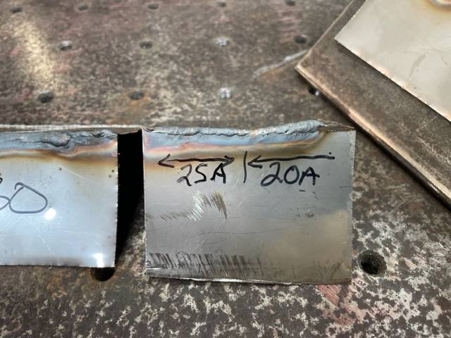 This is some of the test welds, this is 24g SS so its pretty thin and as you can see not very easy to weld. I have tried all sorts of things but mainly playing with the amperage.