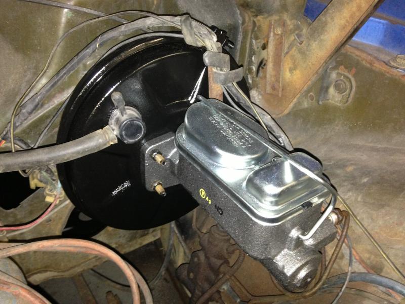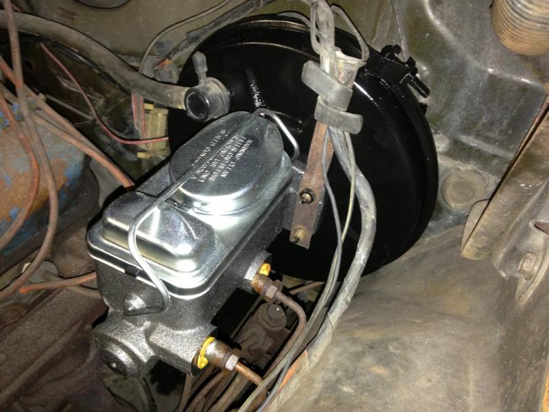 I was able to install the power brake booster and bolted on the master cylinder. The master cylinder is a brand new unit from NAPA and not a remanufactured one. Part # M2066.