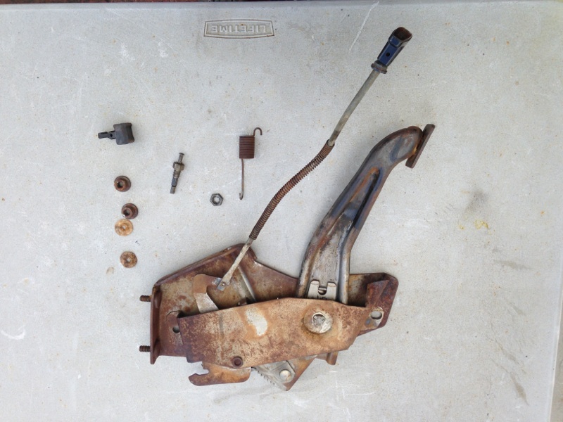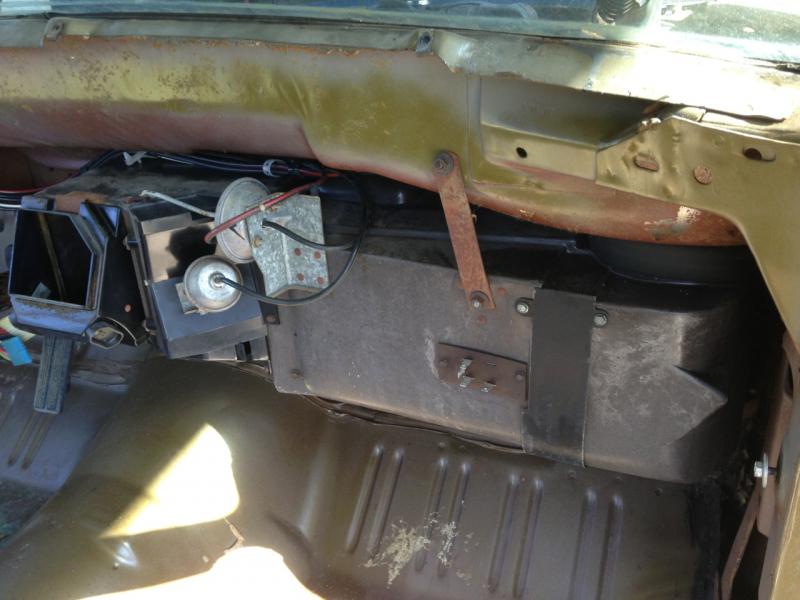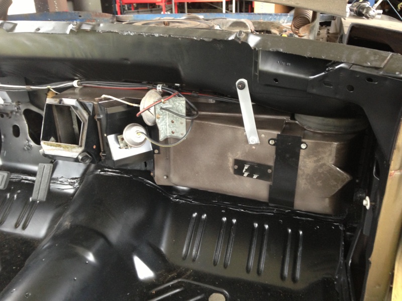 The emergency brake pedal assembly is still soaking in my parts washer. Hopefully in a few days it will be bolted back in along with the heater / AC box. That is all I need to do before the dash can go back in.