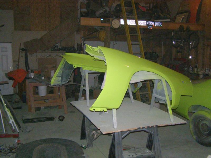 I imagine once its done, he will be more then happy to let you have the keys, Hard to say no to dad? Always was for me lol.. first day may be difficult but you really should be the one to do the test drive, don't ya think! ;) Fenders look good to, you do good work and i hope the hood deal works out, maybe a lower profile air cleaner if its enough and you can find one, ive seen it done before but so much depends on just how much room you may be lacking..