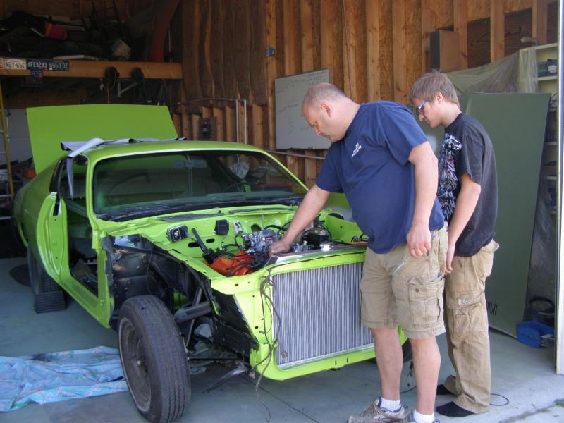 Sounds like a great kid Matt! I can imagine how excited hes getting, looking at the car there ill bet he will need to take that to school and show it off some.. Nothing like a Mopar rumbling into the parking lot of ? i wont even think what a school parking lot looks like compared to when i/we drove to school.. It sounds like you have the hood clearance under control.. good deal..