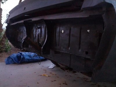 The old man said it was ready for paint and i got a base clear kit with the car but it was not even close to ready in my eyes. So i had to do something that killed a little part of me. Because i lived in washington across the bay from seattle the rain is relentless. I had to take a cheap and drastic action to protect it from further rust. I spray painted it.:violent1:..keep in mind i was in middle of moving from an apartment into a house with a garage but that was a month away.