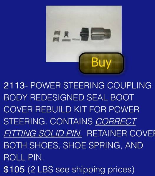 Thanks I ordered new coupler with the newer style seal…fingers crossed!From your pic the shoes and retainer popped off the pin.. they wear over time and will give you slop in the steering wheel. It's best to rebuild it with at least new shoes, retainer clip and seal. Be sure to pack full of grease and carefully bend tabs of cover on. Shoes and retainer circled