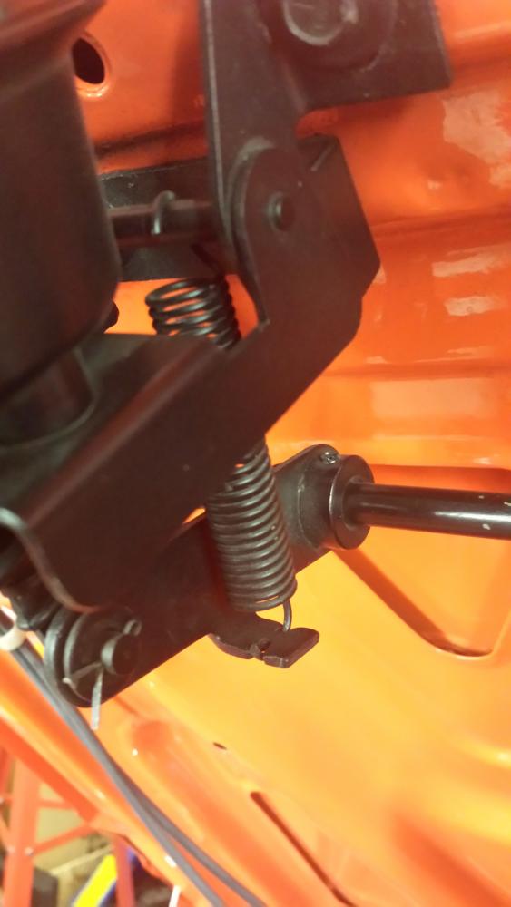 I don't run the spring anymore. It droops when you shut the car off without the spring, but that could just be my actuator leaking. I have the little electrical solenoid under the dash. I think it shuts off vacuum to the engine to hold the hood up when off. Not real sure even after owning the car for 30 years!