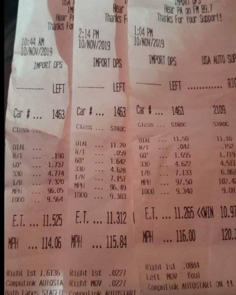 So, you're saying it's much slower??First pass was encouraging. Lost fuel pressure about half track.