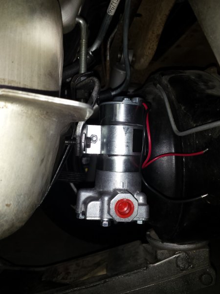 Walbro 255 has lived on the frame of my fury since 2009 and been fine. It's loud but that's the only issueKinda depends on the pump, etc. But I put mine on the inside of the frame, passenger side, just forward of the axel hump - just where it starts to become level. Keeps it low and (in my case) orients the pump correctly. Highly recommend using isolators in the mount.