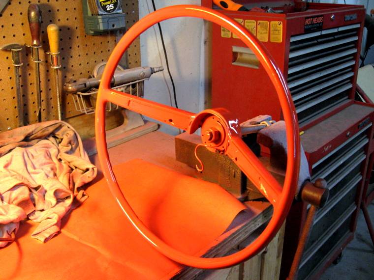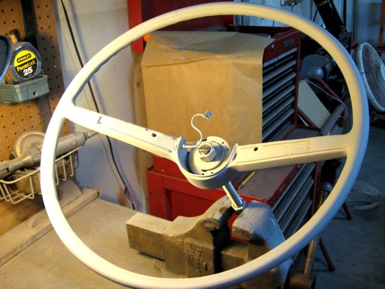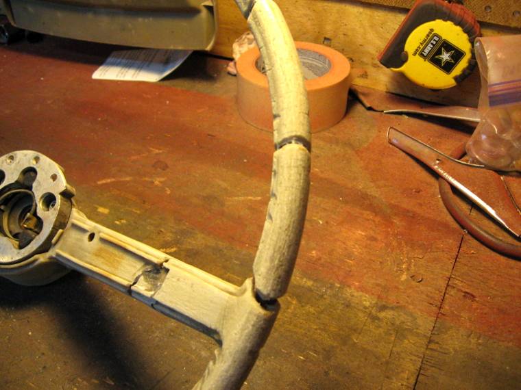 I repaired the wheel on my 65 Coronet with JB Weld in the spoke areas and then to deal with the small perimeter cracks I bought a leather wrap that laces on. That also increases the rim diameter a little bit (these old rims feel so different after getting used to modern steering wheels). I took the interior paint code to a local parts store and had them mix up and put the paint in rattle cans and painted the column and wheel.